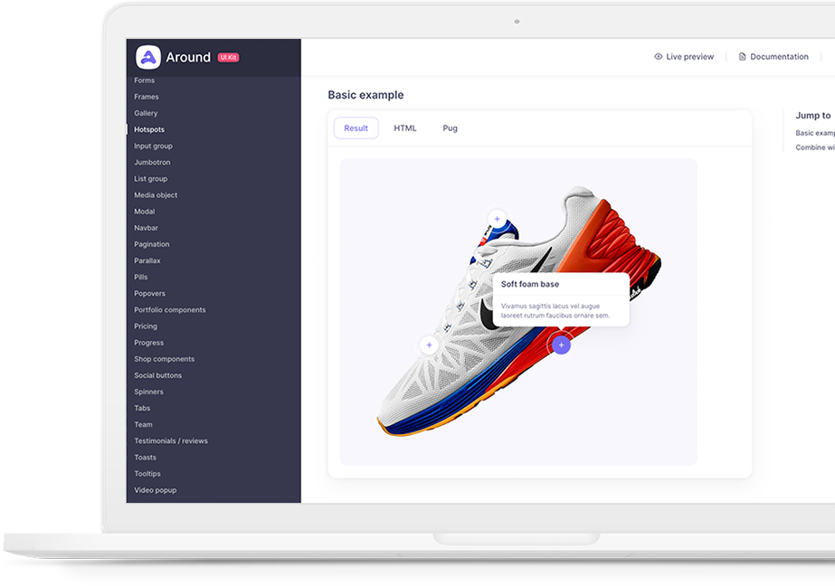 The complete UI Kit with over 50 modular and highly customizable components: Bootstrap + Around unique elements.