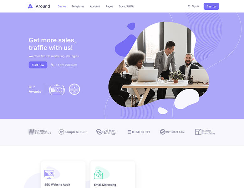 Besides styling all default Bootstrap 4 components Around introduces lots of new flexible, customizable and reusable elements you can use across the website.